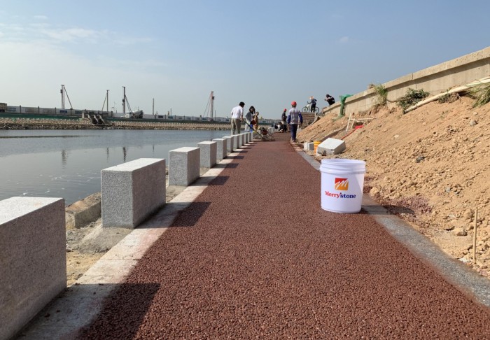◆ 透水混凝土,現場采購石子及水泥并添加馬利斯通專用膠粘劑
